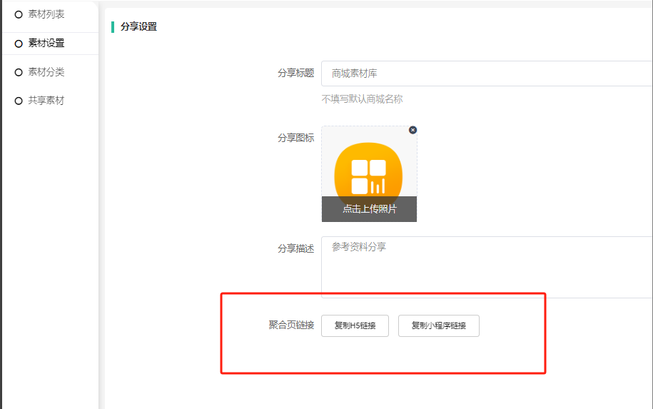 分享标题:不填写默认商城名称(商城名称路径:后台系统--商城设置--商城名称)