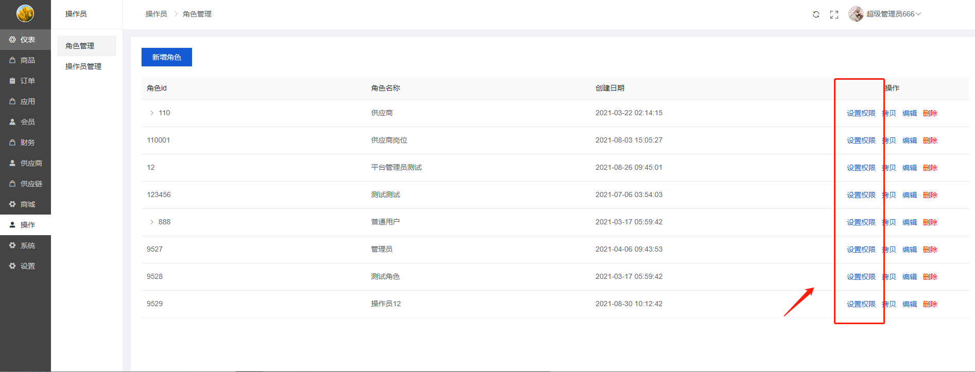 主要是新增/编辑角色设置权限供操作员选择相应的角色与权限