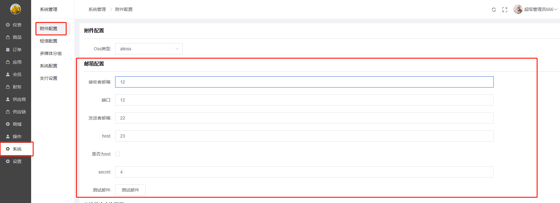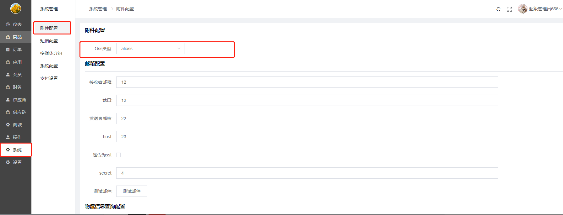1)附件设置:商城对象存储服务,选择好oss类型,填写oss配置