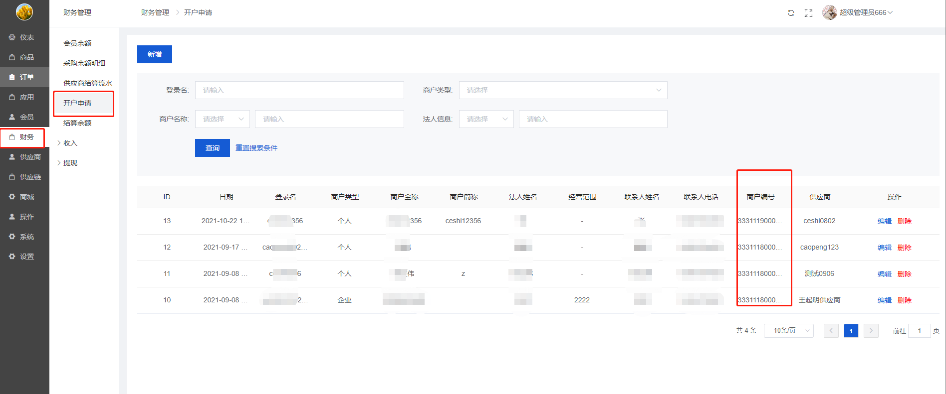 平台在供应链中本身也是分账方,需要在财务中增加开户,开户后的分账方编号填写在此处