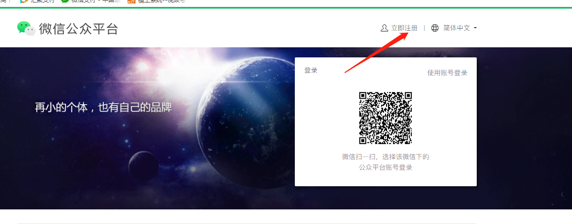 1.输入网址:https://mp.weixin.qq.com/,点击立即注册: