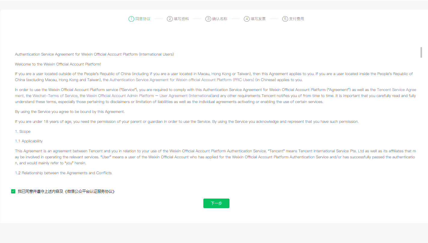 7.扫码支付,填写发票-输入纳税识别号-下一步-扫码付款-等待腾讯审核-注意电话接听(以下案例10分钟完成认证)