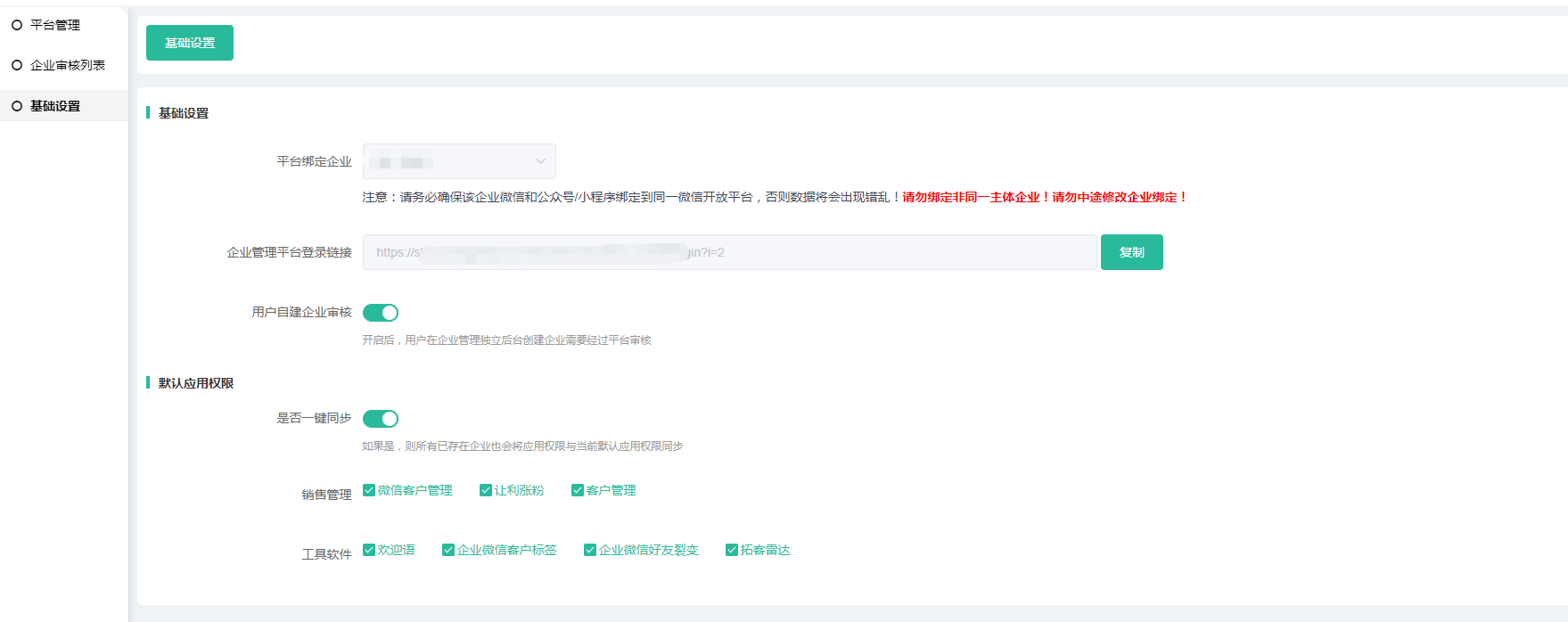 设置基础设置-审核-或添加企业-企业名称和权限