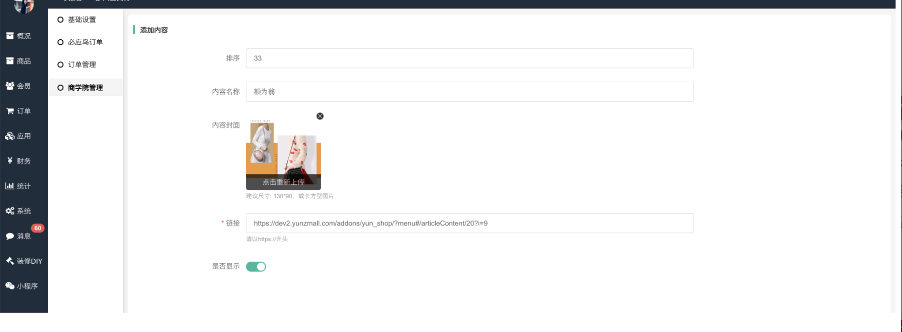 设置内容跳转链接,跳转到文章营销、DIY等页面,引导用户了解更多的信息。