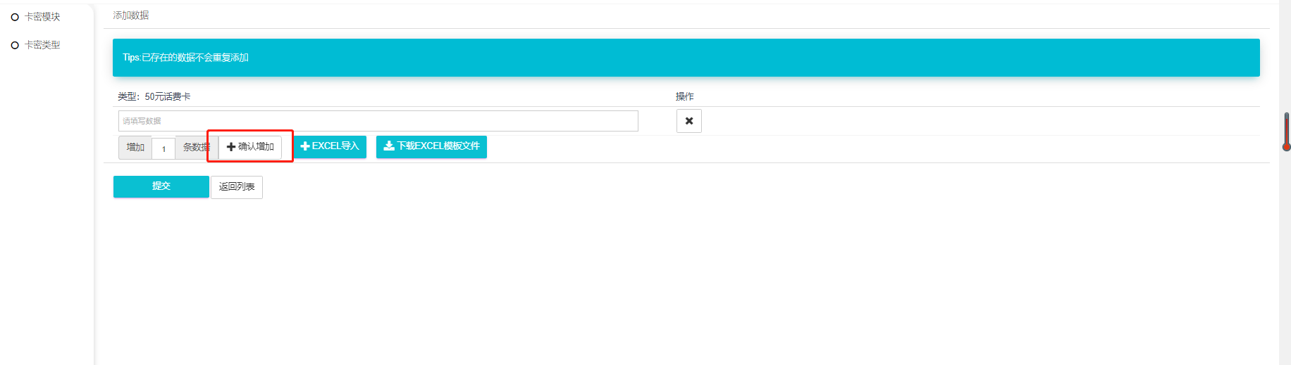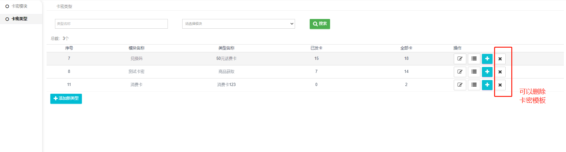 赠送卡密方式:1. 赠送某个模块下的卡密 2. 赠送某个类型的卡密